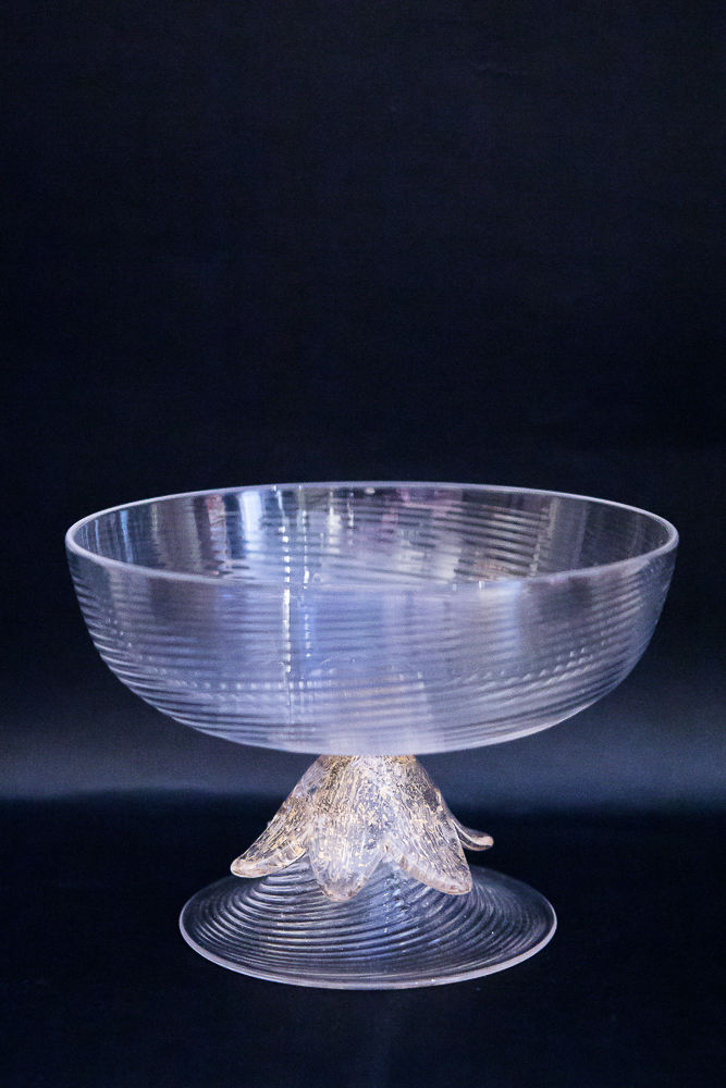 Coppetta in vetro soffiato opalino con oro e fiori in pasta - SALVIATI